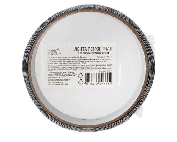 материал - фибергласс, клеевой слой, бумага размер: 5 см * 2 м упаковка: пленка, стикер Самоклеящаяся лента скотч поможет продлить срок службы москитной сетке на вашем окне. Очистите поверхность от пыли и мусора. Отрежьте заплатку по размеру немного больше отверстия и заклейте поврежденный участок.