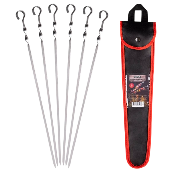 Шампуры Ecos 450х10х0.7мм угловой с витком 6шт. в чехле (1/20)