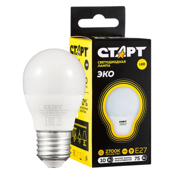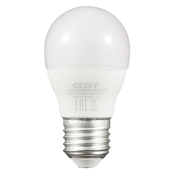 Светодиодная энергосберегающая лампа Старт Sphere применяется для общего и декоративного освещения. Низкое энергопотребление.