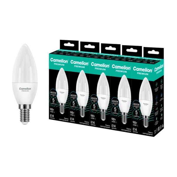 МК_Сamelion Premium LED9-C37-840-E14 (Эл.лампа светодиод свеча 9Вт E14 4000K) (5 шт шринк из 16271)