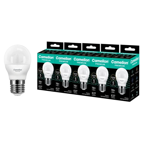МК_Сamelion Premium LED7-G45-830-E27 (Эл.лампа светодиод шар 7Вт E27 3000K) (5 шт шринк из 16272)