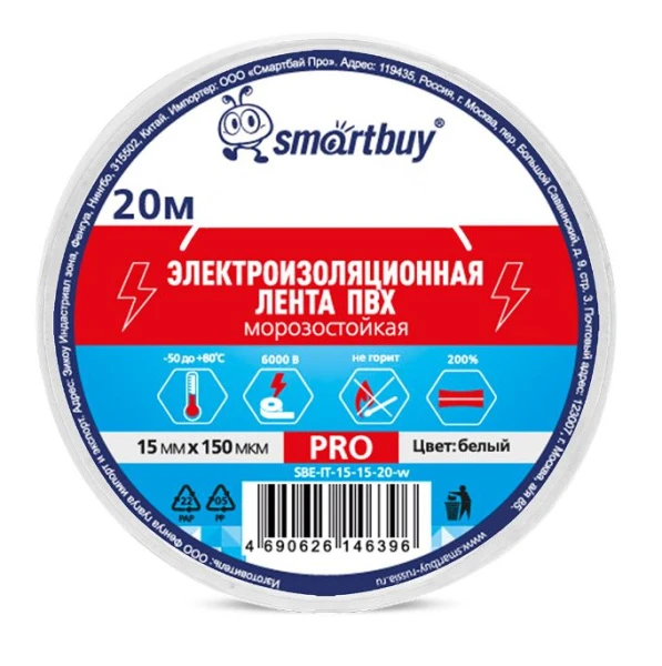 Изолента Smartbuy PRO 15мм*20м ПВХ морозостойкая белый